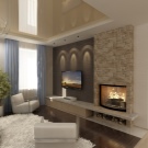 Електрическа камина или газов модел могат да бъдат поставени на стената. Изберете височината на вкус. Интериорът в минималистичен стил ще бъде допълнен с електрическа камина, а порталът от гипсокартон е подходящ за кънтри музика..