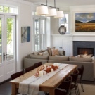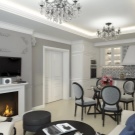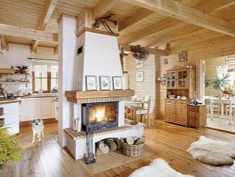 Голяма зала в апартамент или къща е място, където се събират приятели и роднини. Инсталирането на камина ще помогне да се направят такива събирания по -удобни. Стаята с помощта на огнището може плавно да премине в кухнята.