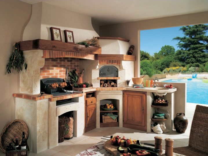 Какво по -хубаво от обяд на чист въздух. Щастливите собственици на собствения си дом трябва да помислят за подреждането на лятна кухня. Опцията за барбекю на открито ще се превърне в любимо място за събиране на забавна компания. Можете да построите малка беседка или мащабна структура. И в двата случая огнището ще се превърне в централната част – мястото за готвене.