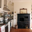 Стилът в стил Арт Нуво предполага шик и прецизни детайли. За такава кухня можете да изберете камина както в класическата версия, така и в най-оригиналната, с витражи..