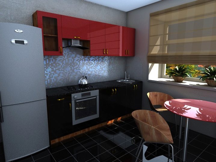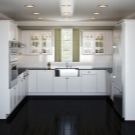 В малка кухня все още не се препоръчва да се постави тъмен под, тъй като това ще намали и без това малка стая и е малко вероятно да бъде възможно да се коригира това в няколко квадрата.