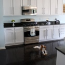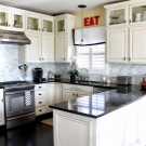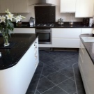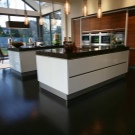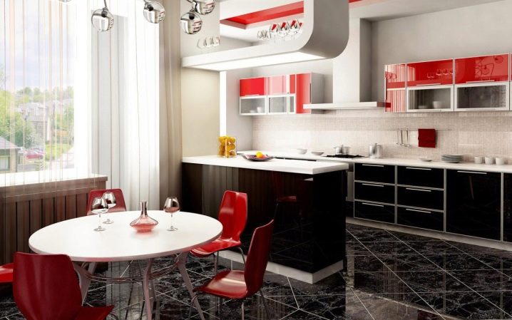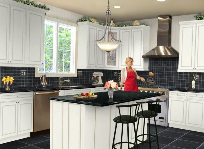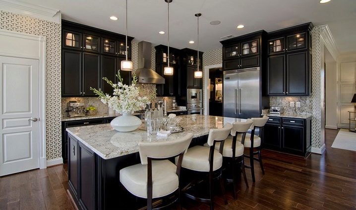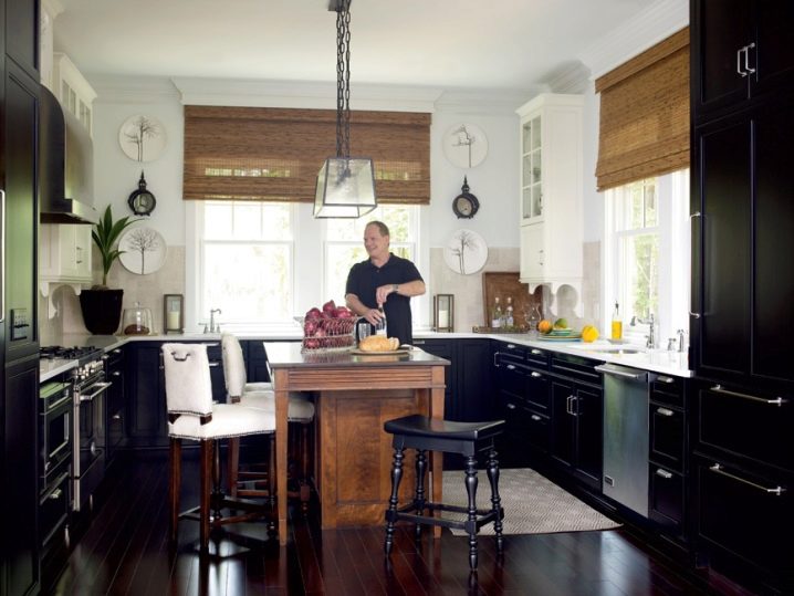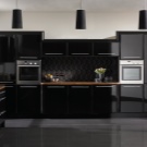 Ако кухнята е малка, това подово покритие няма да работи. Ако обаче имате инсталирани бели слушалки, тогава черният под ще подчертае елегантността и лаконичността на интериора. В същото време светлата кухня ще постави тъмен под, предотвратявайки “яденето” на квадратни метри. В този случай подът ясно ще очертае пространството. В такава кухня няма да са необходими допълнителни акценти – тъмният под ще поеме тази мисия..