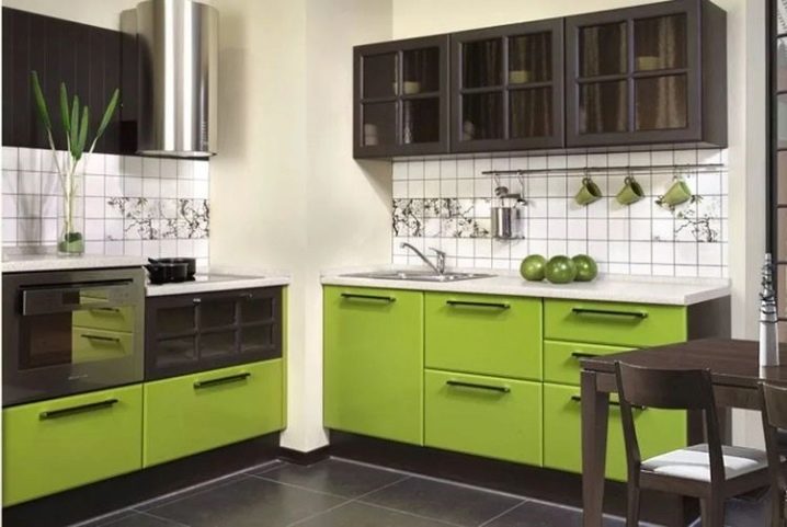 Комбинацията от земя и трева също е добър вариант.. Комбинацията от тъмно сиво със зелено ще внесе свежест и естественост в интериора, а също така ще разбуди апетита.