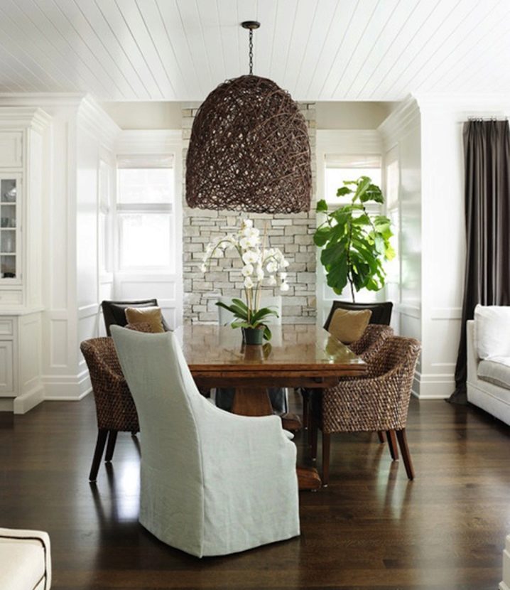 За интериор в етнически стил за тъмнокафяв под са подходящи материали от мебели от сизал, бамбук, ратан.