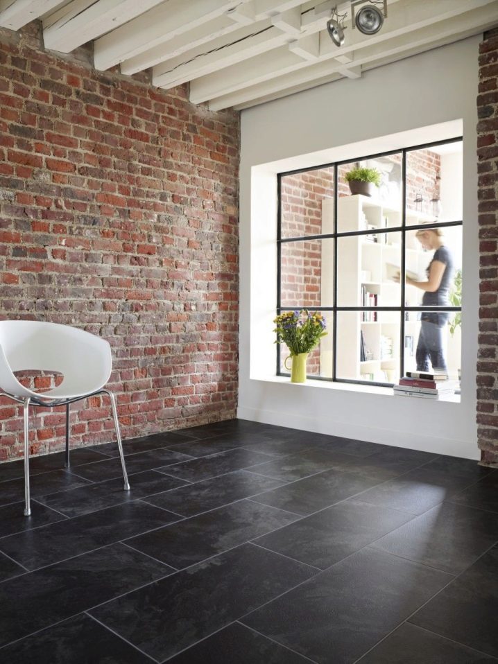 Можете също така да боядисате една стена с черна боя, в същия цвят като подовата настилка. По този начин подът ще се премести върху него, като по този начин ще отблъсне стената, визуално ще раздалечи пространството..
