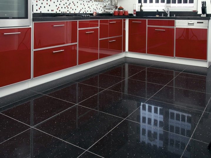 Трябва да се почиства старателно и често. В допълнение, всички петна по него също ще бъдат забележими, особено ако изберете плочка с лъскав блясък като покритие. Американците имат шега: първо вземете икономка, след това поставете тъмни подове. Тук има повече истина, отколкото шеги. В упоритата работа по грижите за тъмния под в кухнята робот -прахосмукачка, за предпочитане с функция за мокро почистване, може да ви помогне. Но ако изберете тъмен под с шарка (дървен релеф, мраморна мрежа), тогава този проблем ще бъде почти напълно решен. Тъмният под с матов оттенък също ще улесни поддръжката..