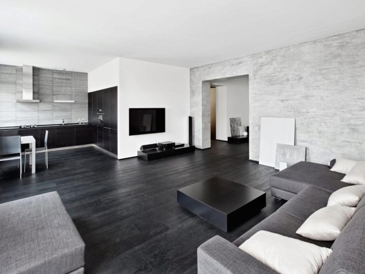 Първо, нека определим кои цветове на пода са тъмни. Има три основни тона – черен, кафяв, сив. Но кестенявата настилка също може да бъде. Подът може да бъде от всякакъв тъмен нюанс на тези цветове, докато наситеността ще бъде отговорна за целия интериор като цяло..