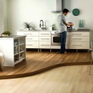 Малък подиум ще издигне кухненското пространство над останалите. За да се засили ефектът, прожекторите или LED лентата могат да бъдат поставени във височината на подиума.