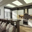 Помислете за възможностите за оформление на модерна просторна кухня-студио.