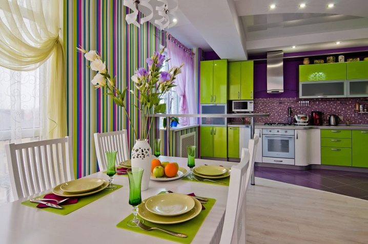 Но не забравяйте за разумното използване на различни цветове. Комбинацията от три или повече ярки контрастни цвята в финала ще създаде частично впечатление. Различни декоративни елементи и кухненски прибори ще поддържат цвета на основната зона.