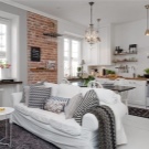 - Светлина. Визуалното разделяне със светлина не е лесна задача. Не е необходимо да поставяте осветителни тела на границата на функционалните зони. Можете да осветите пространствата, където осветлението играе важна функционална роля: кухнята, работната зона и трапезарията. Меката топла светлина е идеална за зона за отдих, ще ви помогне да се отпуснете след тежък ден.