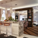 - Бар брояч. Незаменима мебел за модерен стилен интериор. Струва си да се погрижите предварително, че дизайнът на бар брояча съответства на основния интериор по отношение на материал и цвят. Работният плот може да бъде избран от дърво или висококачествен MDF. Дървото може да бъде лакирано, а работният плот от MDF изглежда добре в гланцово покритие.