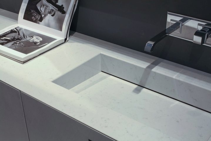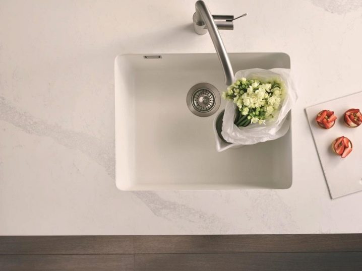 - Кварцовата повърхност не само създава усещане за студ, но и се усеща при допир. Затова трябва внимателно да обмислите цвета и дизайна на поръчаната мивка..