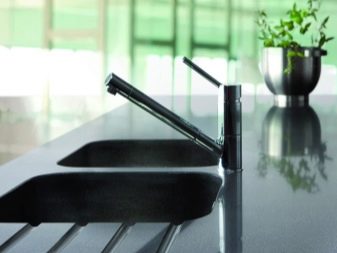 Въпреки изкуствения си произход, такива продукти идеално ще се впишат както в скандинавския, така и в японския стил, известен със страстта си към всичко естествено. В допълнение, съвременните технологии ви позволяват да изберете крановете, които да съответстват на мивката, така че и мивката, и кранът да изглеждат като едно цяло..