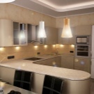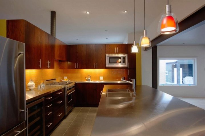 Съвременните дизайнерски технологии и материали правят възможно създаването на различни видове кухненско осветление по такъв начин, че светлината да е възможно най -удобна при приготвяне на ястия и да създава уютна атмосфера. Възможно е не само да има общо осветление на тавана, но и лампи над работната повърхност на кухнята. Много домакини харесват този начин на организиране на интериора, който може да бъде поставен на най -необходимите места: над печката, мивката, режещата повърхност, микровълновата.
