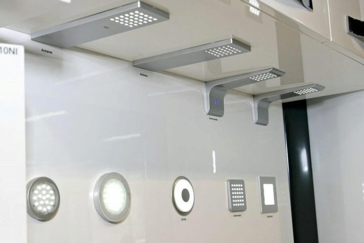Броят на лампите също трябва да се изчисли правилно. Необходимо е да няма недостиг на светлина върху работната повърхност, в същото време излишъкът от лампи също няма да изглежда хармонично. Най-оптималното подреждане е 1-2 крушки за всяка от зоните: печка или котлон, мивка, режеща повърхност. Заедно с лампите, незабавно трябва да закупите цялото помощно оборудване: проводници с необходимата дължина, сенници, автоматични кутии, скоби, крепежни елементи, ключове и сензори.