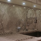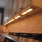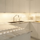 В повечето кухни цялата работна зона е разположена по протежение на една стена или покрай две съседни във формата на буквата G. Някои съвременни дизайни включват островно подреждане на зоната за готвене. В зависимост от това се планира осветление на работната зона. Най-често срещаният начин за поставяне на прожектори е по права линия по протежение на плочата-плот-мивка на равно разстояние един от друг. Ако над работната повърхност има окачени шкафове, най -добре е лампите да се монтират в основата им. Съвременните модели осветителни устройства улесняват това.