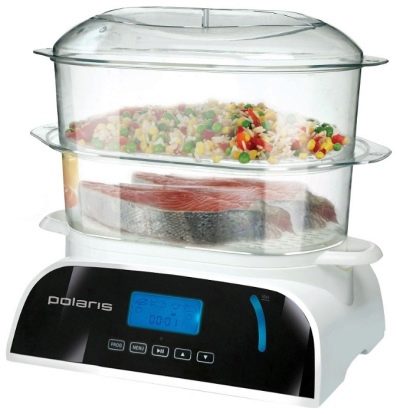 В магазините за хардуер можете да намерите голям брой малки параходи на голямо разнообразие от цени. Моделът Polaris PFS0213 е в голямо търсене. Тя има две нива, тоест можете да готвите два различни вида храна едновременно. Оборудван е с прозрачни пластмасови купи, има тава за отцеждане и готварска печка за яйца. Цената е доста разумна: около 3 хиляди рубли.