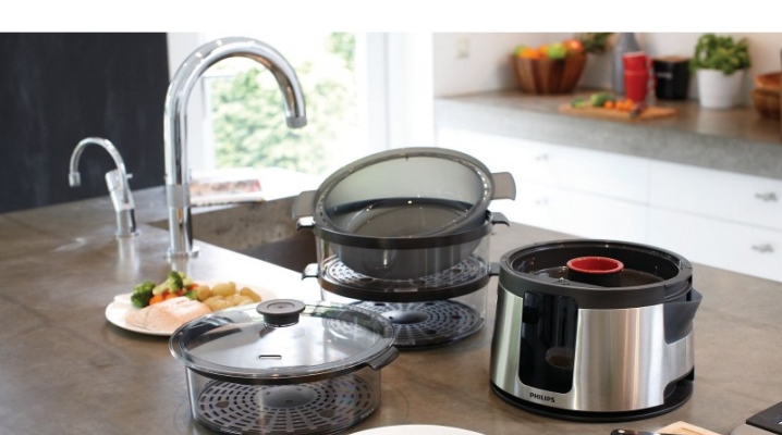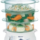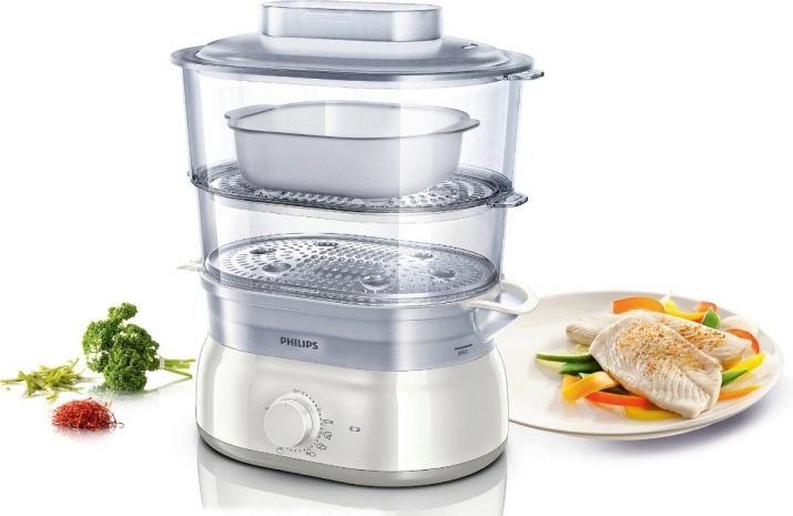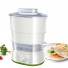 В същото време в него можете да готвите няколко продукта наведнъж – зеленчуци, месо, риба. За това устройството има купи със същия обем, те са инсталирани в специални “клетки” вече с продукта, чието приготвяне се извършва независимо. Ако храната е твърде мазна или сочна, останалата течност се оттича в специални тави. Но в същото време готовото ястие ще остане меко и доста сочно, защото е на пара и в собствен сок.. И още един голям плюс – дори в най -малкия параход можете не само да готвите, но и да затопляте отново храна.