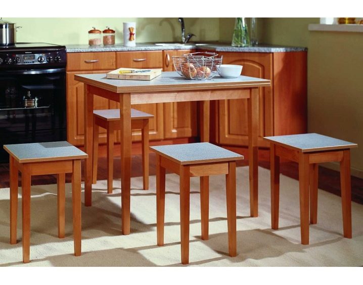 Особеностите на малките маси за кухня се крият в тяхната висока мобилност и лекотата на материалите, които се използват за тяхното производство (като правило, те са изработени от пластмасови или светли дървесни видове – ясен и бор). За да се избегне нарязването, плотът на масата е рамкиран със специални фурнирни вложки.