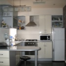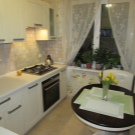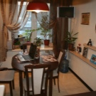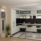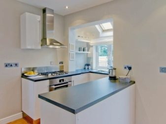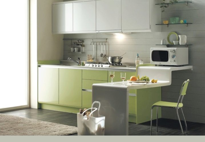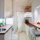 Друг вариант може да се използва дори за много малка кухня. Става въпрос за изплъзване на плоча от слушалките. Той няма крака и не може да бъде премахнат напълно, а двама могат да седнат зад него – не повече.