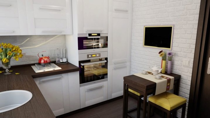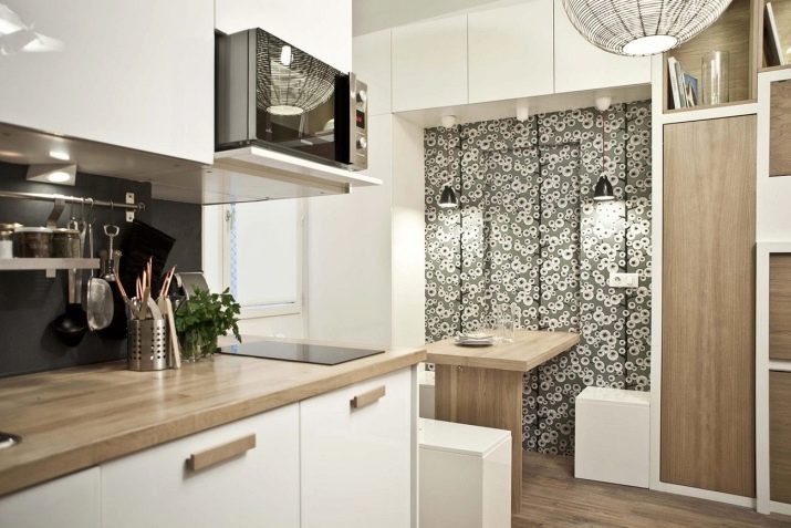 Ако кухнята е малка, не бива да се опитвате да вкарате в нея стандартна маса за хранене, защото дори и да успеете да направите това, няма да се налага да говорите за никакво удобство за домакинята – практически няма да има място за маневри . В малка стая има място, където дизайнерските идеи могат да се разгърнат – подходът за решаване на проблема трябва да бъде оригинален, така че кухнята да се окаже красиво оборудвана и функционална.
