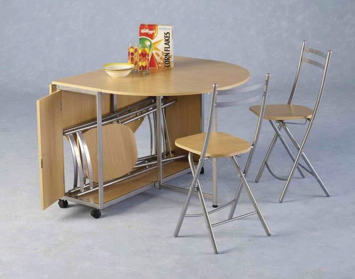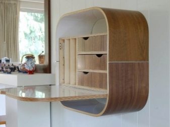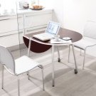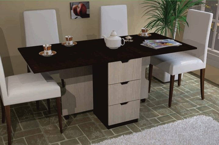 Това, може да се каже, е божи дар за едно тесно пространство. Цялата трансформация се основава на промяна на площта на плота, зад която можете да подредите място за двама души, а ако е необходимо и за шестима, например. В сгънато състояние това е компактно нещо, което заема много малко място, така че може да бъде пренаредено на всяко място. Има такива оригинални трансформатори, които се сгъват в чекмедже, а ако е необходимо – минута бизнес и пред вас маса за хранене.