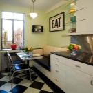 Диванът на кухненския ъгъл може да бъде украсен, като върху него се поставят възглавници и табуретки, оставете на масата да се развихри необичаен държач за салфетки, а фототапетът на масата ще помогне на вас и вашите приятели да се насладите на приятелско общуване и голяма вкусна пица, която те донесе със себе си и го поставихте на сгъваемата си маса -трансформатор.