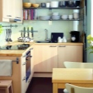 Кухненските мебели изглеждат страхотно, включително масата, ако са поставени срещу съседни стени.
