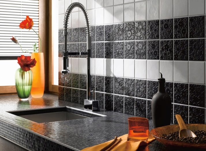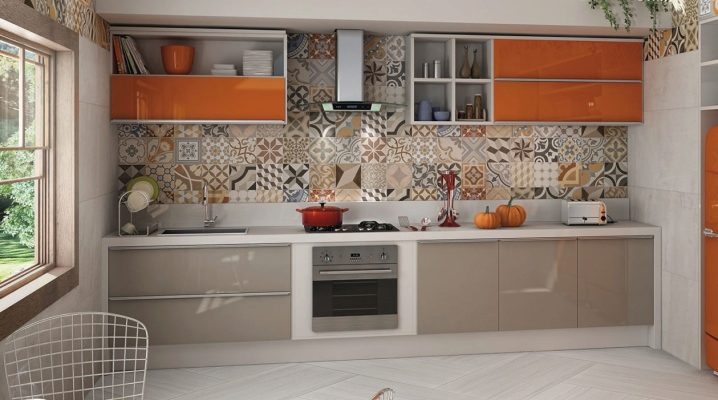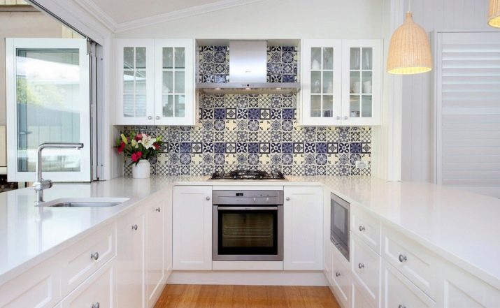 Универсалният кухненски екран е изработен от гладки матови керамични плочки или MDF панели в подходящ бял цвят. Най-традиционната е направена от едноцветна мозайка с ярко оцветени вложки, а най-необичайната е от плътен каменен слой или огледален панел..
