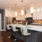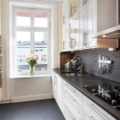 Когато маркирате място за престилка на кухненската стена, си струва да вземете предвид не само параметрите на стаята и избраните мебели, но и размерите на самия готвач. Със стандартна височина от 65 сантиметра на защитния екран, който е предвиден зад електрическата печка, ще бъде трудно за миниатюрна домакиня да достигне до шкафовете или абсорбаторите, окачени на това място, и следователно, когато подрежда кухнята си, е по -добре за съкращаване на такава престилка до 48-50 сантиметра. Ако обаче в кухнята е инсталирана газова печка, височината на екрана зад нея задължително трябва да бъде 75-80 сантиметра. И ширината може да бъде оставена както обикновено – 50-60 сантиметра. Или го доведете до размера, предвиден от дизайнерския проект.