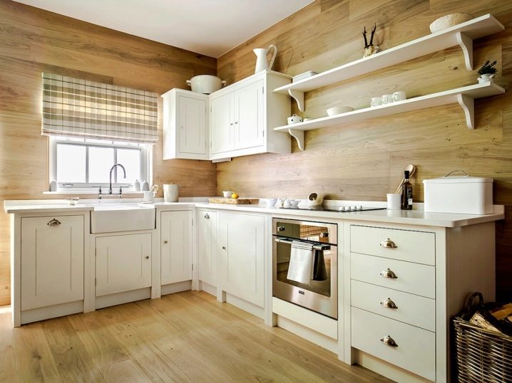 Колкото и да е странно, естественото дърво се използва и за направата на оригинални престилки, колкото и скъпо да е то. Особено при декориране на уютно кухненско пространство в селска вила или в селски стил, както и в комбинация с дървени мебели и подходяща декорация на стаята.