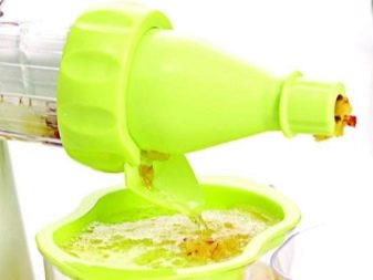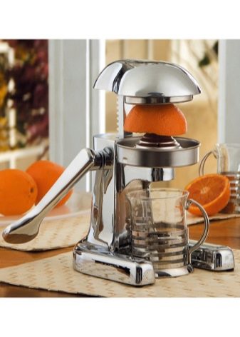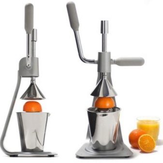 - добър вариант за цитрусови плодове и нар. С негова помощ се получава здравословен сок от нар без горчив послевкус, защото с това изстискване преградите между ядките не се увреждат..