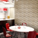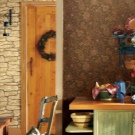 - Ако сте декорирали кухнята си в селски стил – инсталирали сте мебели от масивно дърво, използвате глинени дръжки и съдове за декорация – тогава можете да залепите тапети с шарка „като тухла“ или „като естествен камък“. Тази комбинация ще бъде много успешна, ще се създаде ефектът от грубата зидария на стените и известен набег на селски шик..