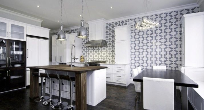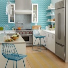 - Не трябва да претоварвате интериора с различни текстури и пъстри цветове – поставете акценти. Ако искате да се съсредоточите върху интересни тапети, тогава изберете мебели с неутрален цвят и без излишни декорации; ако вашият кухненски комплект е проектиран да привлече цялото внимание към себе си, използвайте обикновен тапет, за да създадете неутрален фон;