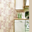 - Самозалепващ се пластмасов тапет. Тяхната особеност е наличието на лепкава основа (плат или хартия), върху която се нанася слой от полимерно покритие. За кухнята най -често се използва пластмасов тапет с релефен модел за боядисване..