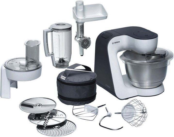 Дизайнът се състои от тяло, под което е скрит електродвигател, набор от сменяеми приставки и купа. Такива смесители принадлежат към многофункционални устройства, тъй като поради повишената мощност и разнообразие в приставките, те могат да се използват за различни цели..