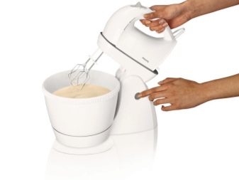 Заслужава да се отбележи, че в допълнение към ръчния и стационарен миксер, в продажба има смесени агрегати, които имат специална стойка с функция за лесно разглобяване..
