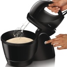Ръчните устройства за дома, както и потопяем блендер, са в ръката по време на употреба, от което са получили името си. Всички бутони са разположени на тялото, за да направят управлението възможно най -удобно. По тялото, като правило, има две дюзи за разбиване и смесване на продукти. Броят на прикачените файлове може да бъде до четири. Такъв домашен миксер ще бъде удобен за сладкар, защото може да се използва за омесване на тесто, кремове и сосове..