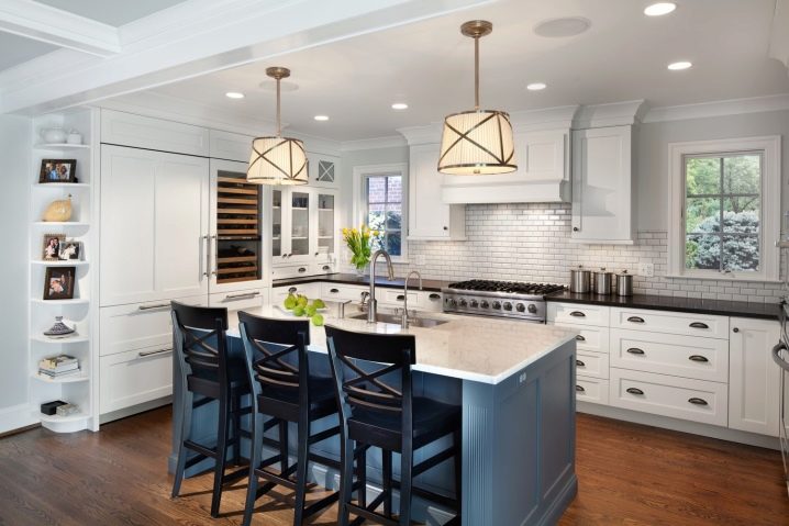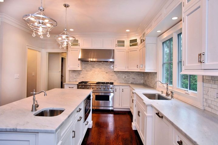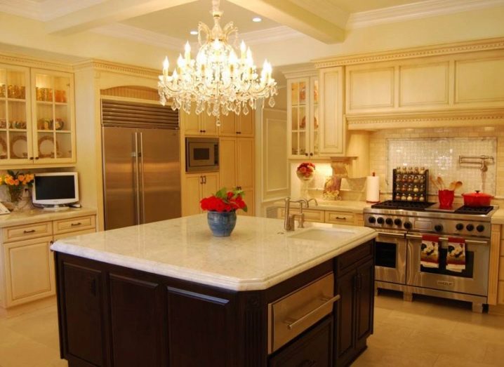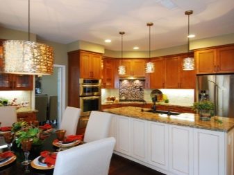 Мястото за инсталиране на полилея в кухнята директно зависи от размера и дизайна на стаята. Често за комфортен престой в една стая през нощта е достатъчен само един осветителен елемент, който се намира в централната част на тавана. обаче повечето собственици предпочитат да използват допълнителни източници на изкуствено осветление. Например, много по -удобно е да приготвяте храна, ако зоната за готвене е осветена от прожектори..