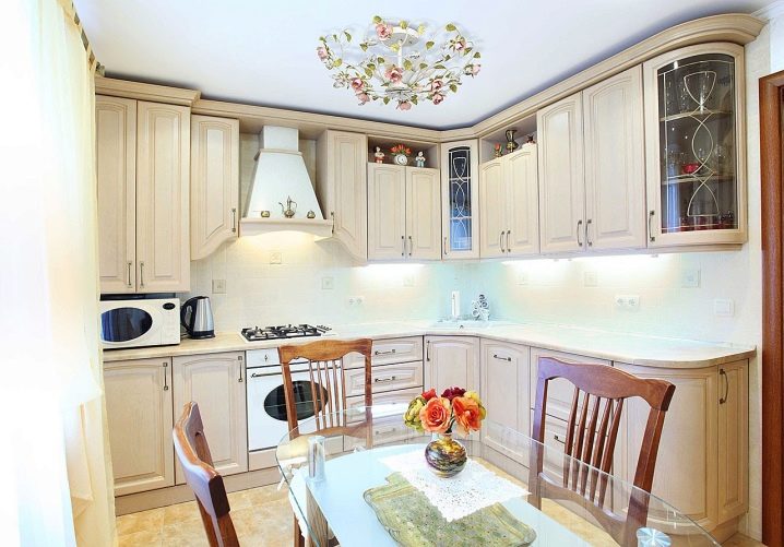 Малка кухня въвежда много ограничения в създаването на интериора, което не може да не повлияе на избора на полилей.. Осветителните тела за малка кухня не трябва да бъдат твърде масивни и да имат дълъг проводник.