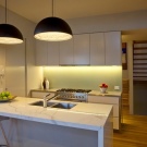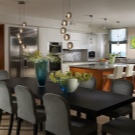 Ако вашата кухня е комбинирана с хол, тогава има и няколко вида осветление. Можете да окачите голям полилей в средата на хола и да осветите трапезарията с ниско висящ модел с няколко нюанса..