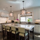 Този тип полилеи за кухнята има обяснително име: те се състоят от един или повече нюанси, които са окачени на верига, тел или шнур и са фиксирани към тавана. Най -често полилеите за кухненски висулки могат да се регулират на височина, така че можете да регулирате интензивността на светлината..