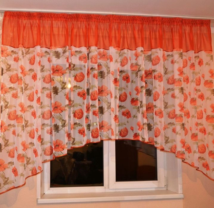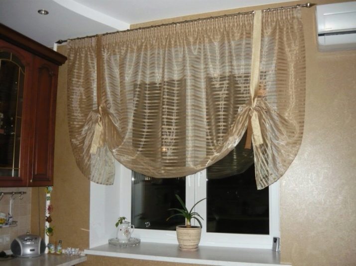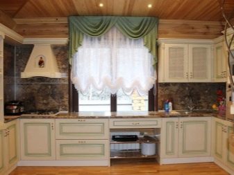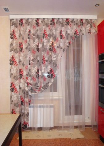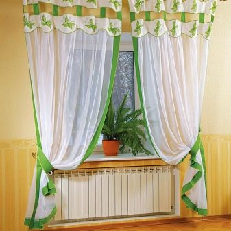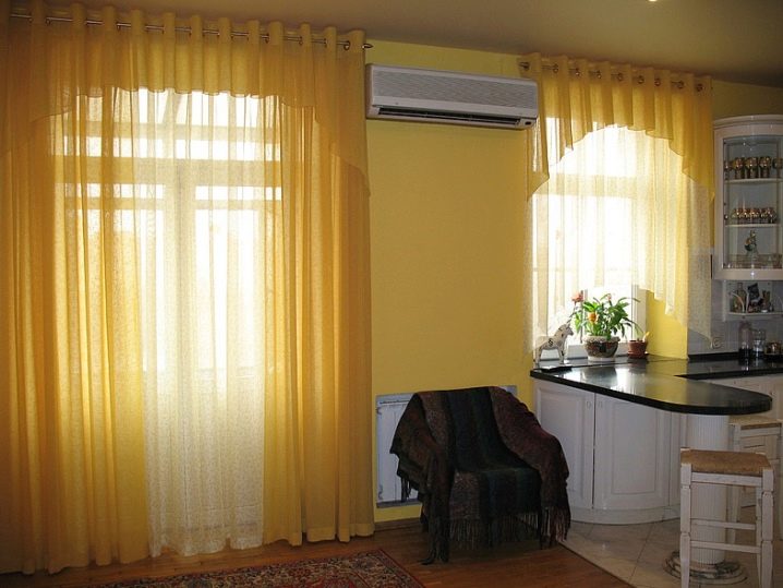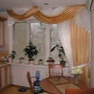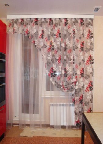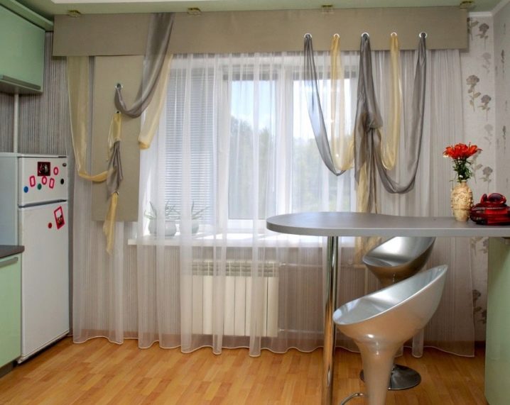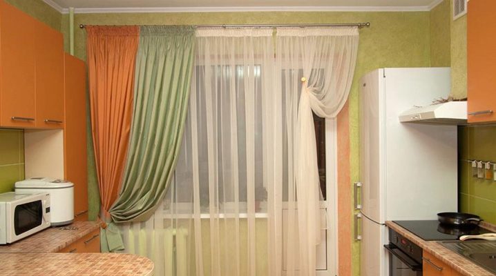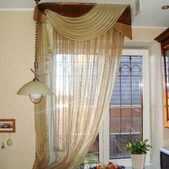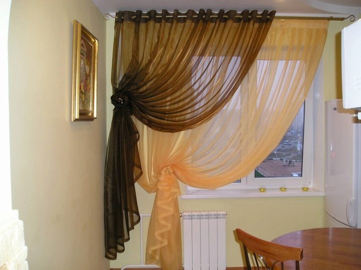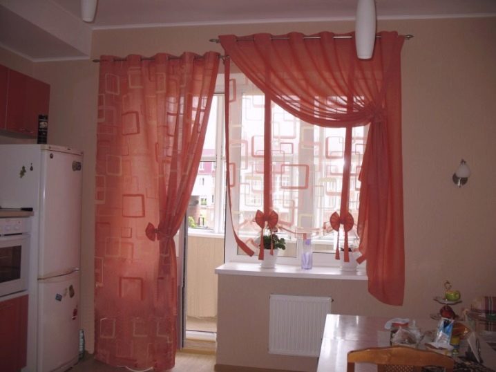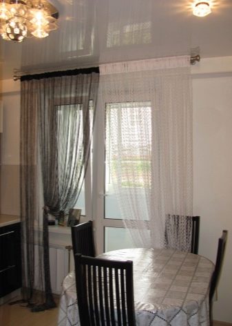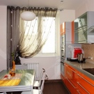 Ако има изход към балкона от кухнята, тогава трябва да се направи разрез в завесата, за безпрепятствен достъп до вратата, или да се закачи муселин вместо завеси.