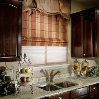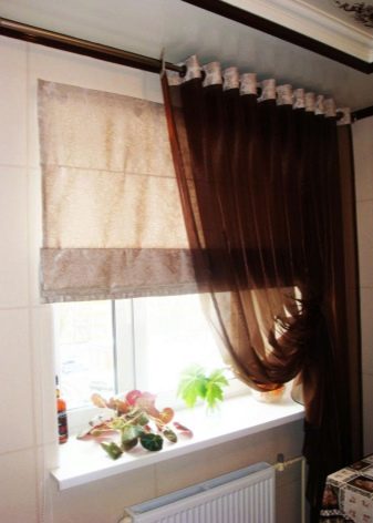 - Ако има мивка близо до прозореца, тогава най -добрият вариант би бил ролетни щори, римски или щори.