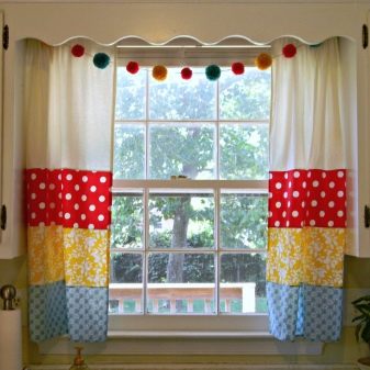 Най -подходящите видове кухненски завеси за малка площ са римски, австрийски, ролетни щори и всякакви техни варианти. Можете също така да закупите готови завеси с перде във формата на арка.