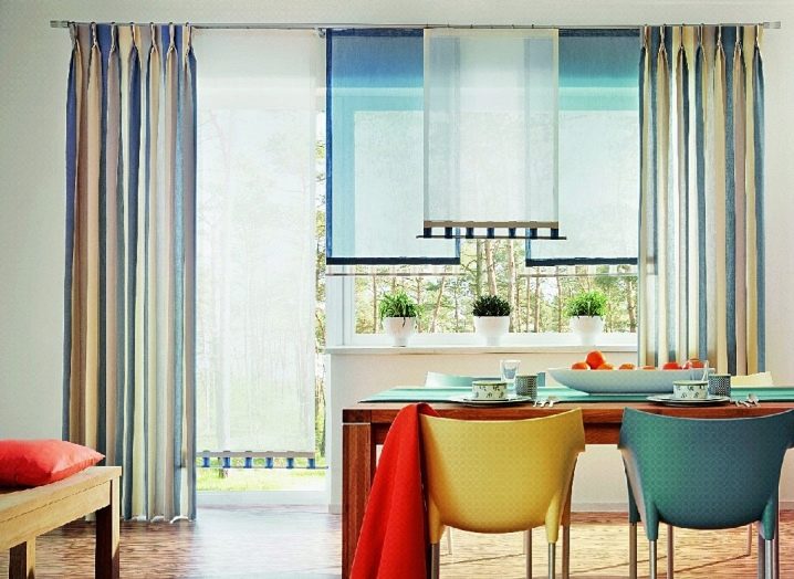 - комбинация – поставете японски панел на вратата и окачете ролетна щора на цвят на прозореца;