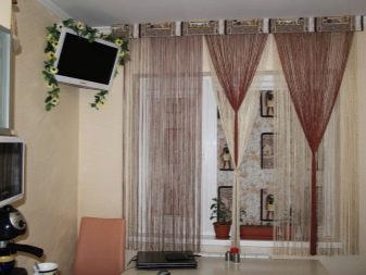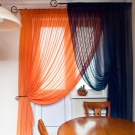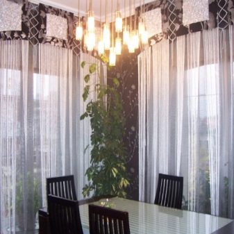 Kisei на кухненския прозорец също ще изглежда страхотно. Тук можете да играете с цвят, което ще ви помогне да разделите пространството на зони. Тя е извън модата. Завеса от нажежаема жичка ще отговаря на строг класически стил и в минимализма ще бъде полезна. В допълнение, муселинът може да бъде украсен с различни декори, мъниста, фиби, пеперуди, в зависимост от нуждите на интериора..