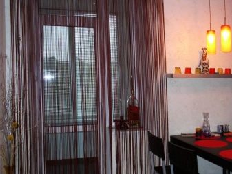 Тъй като изходът към балкона трябва да се отваря свободно, воланите с различни форми и големи ламбрекени не са подходящи за дизайн на прозорци. Освен това, според законите на физиката, когато балконската врата е отворена, въздухът от печката ще бъде насочен към балкона, носейки миризми и мазнини със себе си. Ето защо при избора на тъкани за завеси за такъв прозорец е необходимо да се избират устойчиви на износване лесни за поддръжка материали..