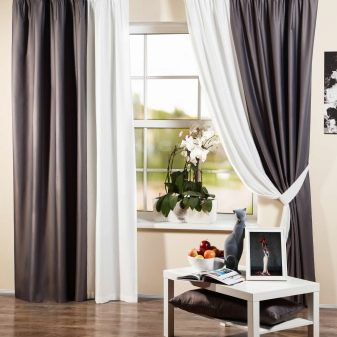 По -добре е да изберете обикновени завеси от тюл, органза, памук. Големите орнаменти са неприемливи. Вертикалните ивици, от друга страна, ще помогнат за увеличаване на височината на тавана..
